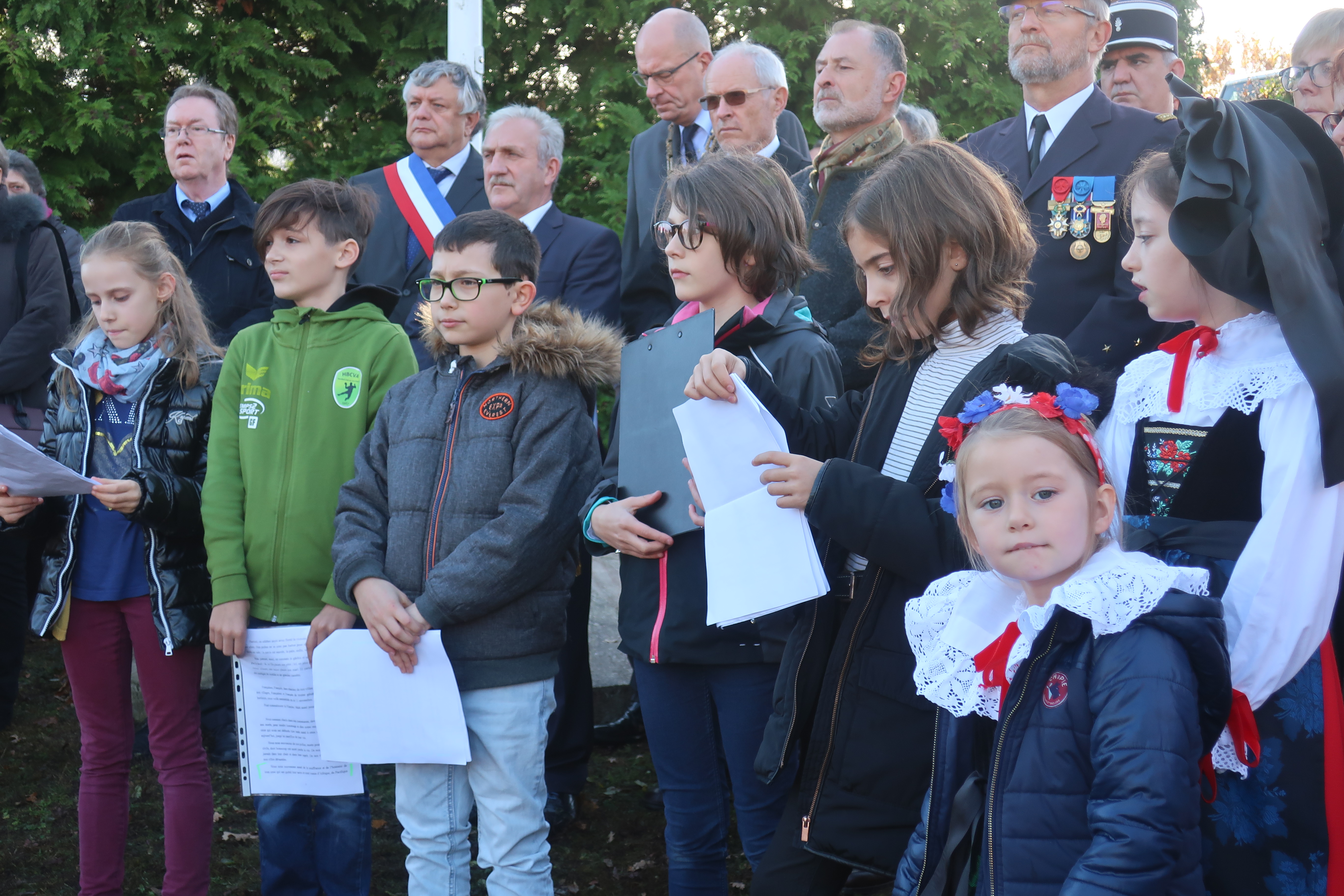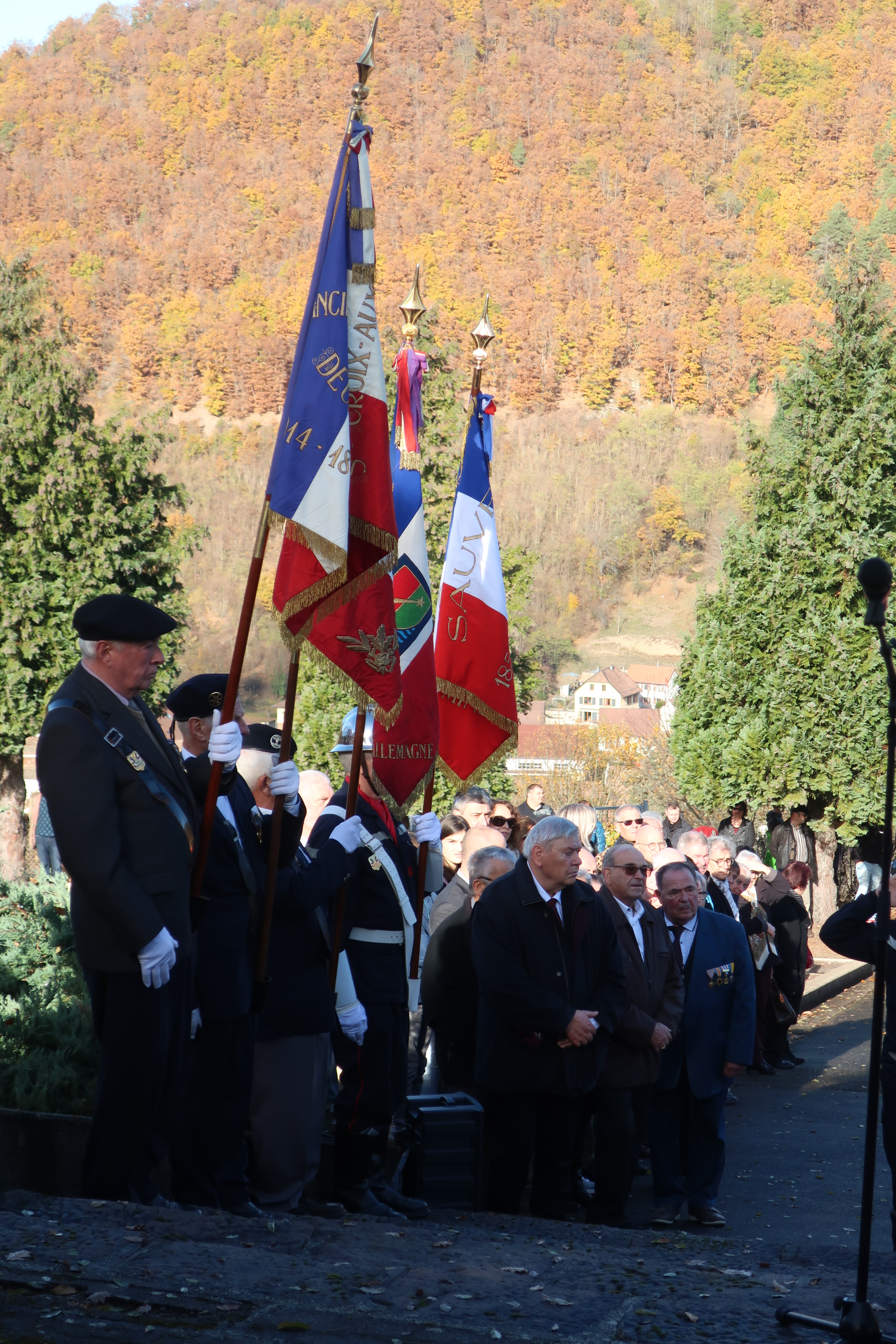 La cérémonie qui s’est déroulée le matin, à la Nécropole nationale de la Hajus, a revêtu un caractère particulier en réunissant à cette occasion les forces vives de la vallée. En mon nom, et au nom du conseil municipal de Sainte-Croix-aux-Mines je tiens à remercier sincèrement toutes les personnes qui ont contribué au succès de cette cérémonie émouvante. Monsieur le curé et monsieur le pasteur, les élus, les anciens combattants , les chorales de la vallée , les sapeurs-pompiers du Val d’Argent, la Caisse des mineurs d’Echery, la Croix-Rouge, la Société de musique Concordia, la clique des anciens sapeurs-pompiers de Sainte-Croix-aux-mines, les élèves de la commune ayant pris la parole pour lire le message du Président de la République , ainsi que leurs camarades présents, sans oublier le directeur de l’école, les enseignants et toute la population.