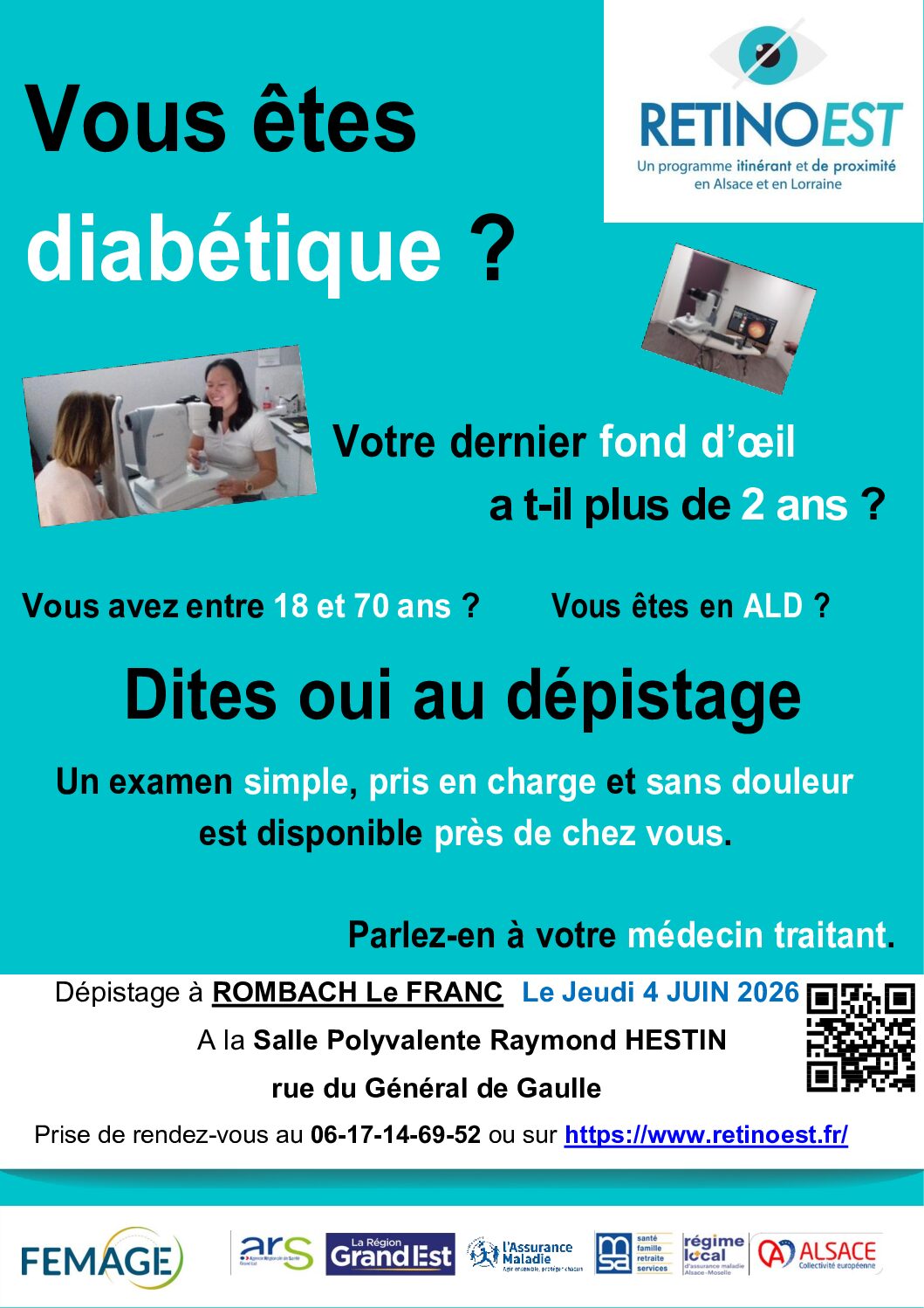 Faite un dépistage simple gratuit le jeudi 4 juin 2026 à Rombach le Franc