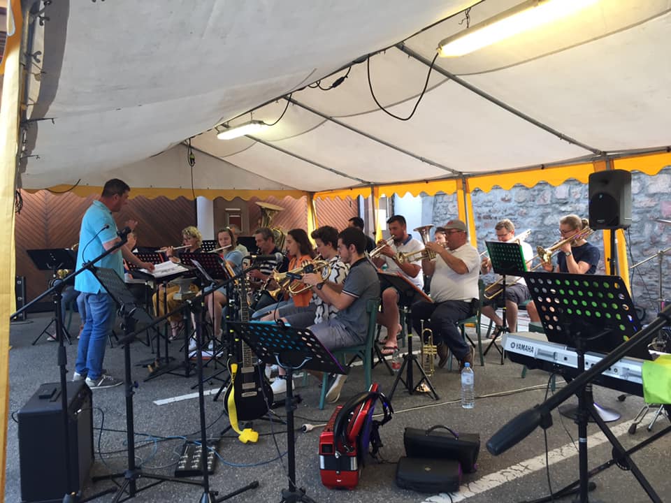 Une fête de la musique originale et nouvelle formule a rassemblé vendredi 21 juin près de 300 personnes dans la cour de la mairie. La Concordia et l’Association des «Donneurs de sang» avaient monté tables et chapiteaux et invité des musiciens locaux au côté des musiciens locaux. Cette formule a attiré des amateurs de toute la vallée. Le temps était au beau et les tartes flambées préparées par le Colibri ont été prises d’assaut. Une belle soirée qui réservait une surprise supplémentaire, qui a suscité des ah et des oh de la part de tous : l’illumination du plus grand arbre festif de la vallée : le séquoia de plus de 30 m de haut qui se dresse en majesté à l’entrée de la cour de la mairie.